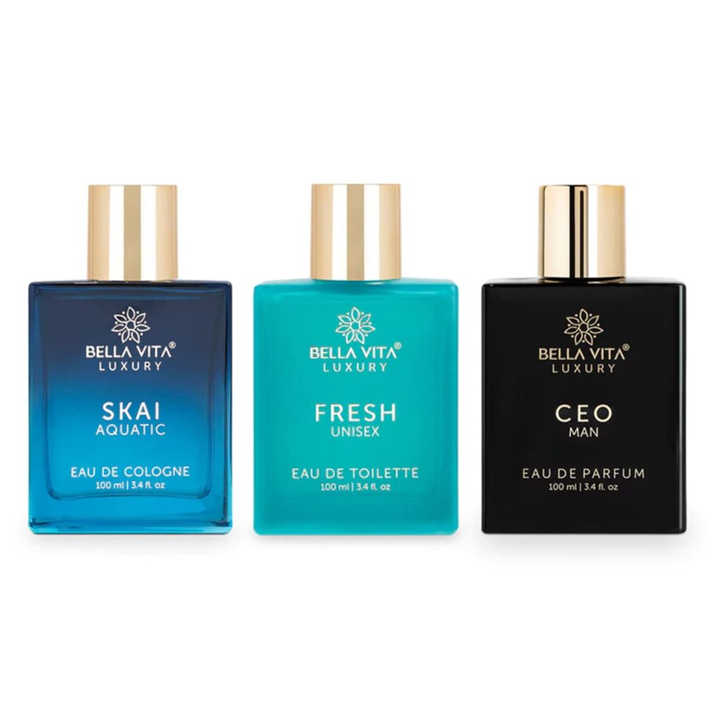 Here are three Premium Fragrances from the House of Bella Vita, starting with Skai Aquatic which is a nice refreshing and Long Lasting fragrance. It is a premium quality product and adds an understated charming quotient to your aura. The top notes of the fragrance are Bergamont and Coriander. Heart notes are Sage, Lavender, Pepper and Base notes are Patchouli.